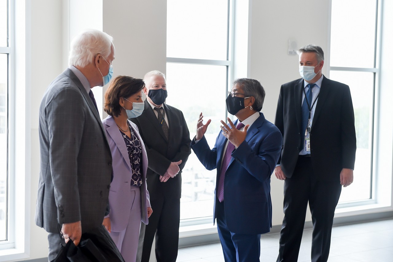 On May 24, 2021, Micron hosted a group of federal and local officials who have championed legislation to incentivize investment in semiconductor manufacturing and research in the United States. U.S. Secretary of Commerce Gina Raimondo along with U.S. Sen. John Cornyn, U.S. Sen. Mark Warner and Mayor Michelle Davis-Younger toured the company’s manufacturing site in Manassas, Va., and participated in a joint-press briefing with Micron Chairman, President and CEO Sanjay Mehrotra.